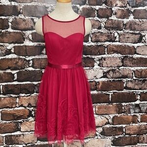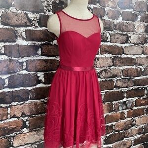 DB Studio Dress Red Christmas Holiday Floral Ribbon Tulle XS