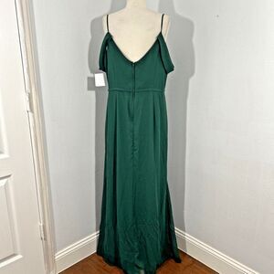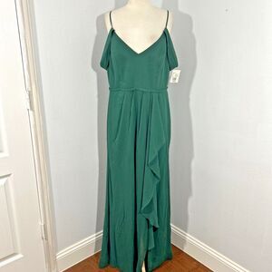 DB Studio Dress Women 14 Green Chiffon Cascading Off The Shoulder Formal