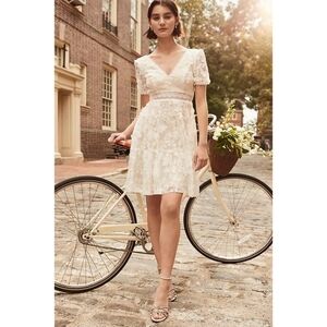 DB Studio Nwt 3D Soft White Floral Lace V-Neck Short Dress, Size 12