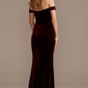 David's Bridal Off the Shoulder Velvet Sheath Dress- Color Wine- Size 4