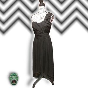 Retrosaurusrex Vintage; rockabilly; volup; twee; glam; homecoming; prom; formal; pinup; retro; party; Marilyn Monroe; red carpet; marvelous; flirty; costume; 1950’s; repro; adorable; Xl; little black dress; lbd; Audrey Hepburn; whimsygoth; goth; black tie; cocktail; costume; special occasion; volup; DB Studio Whimsygoth One Shoulder Sweetheart High Low Formal Dress, XL