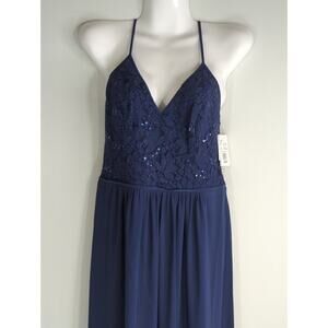 DB Studio Women's Sequin Glitter Lace Wedding Maxi Dress Navy Blue Size 6 NWT