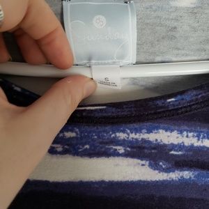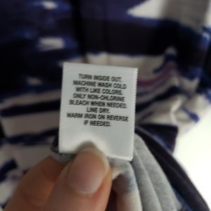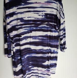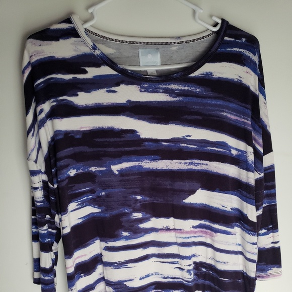 This blouse is so comfy it feels like you're wearing pjs! Has about a half length sleeve due to the drop shoulder effect. Pretty paint like pattern on the blouse. Perfect gently used condition!