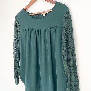 DB Top | Lace sleeves | Color: Green | Size: Large | Condition: Like New
