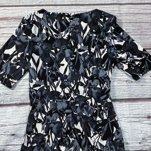 DB Womens Dress size 4 Black Gray Ivory Wrap Look Soft Silky Stretch Back Zip Up