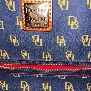 Dooney & Bourke large .Like new carried 3 times. Was a gift but I pefer crossbody bags. The bag is 12"long bag..,10" High 2isdide pockets one zips, 2 small inside pockets & 1 zipper pocket on outside front of bag.