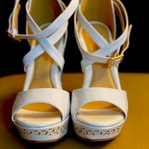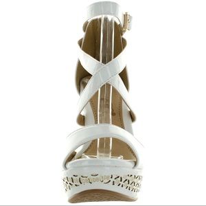 WHITE ANKLE STRAP CROSSING WEDGES - 4 INCHES