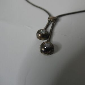 Beautiful lariat style necklace with rope chain and two clear rhinestones. Marked DBJ 925 Italy. It needs to be polished due to tarnish, and the lariat doesn't work(not sure if it's supposed to), still a lovely piece!