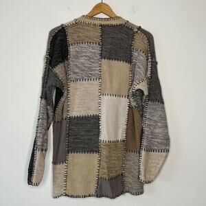 D.B.L. Cardigan Womens Medium Tan Patchwork Chunky Knit Grandpacore Oversized