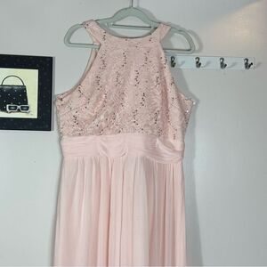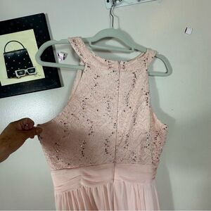 DB One Shoulder Lace Dress in Soft Pink with sequins