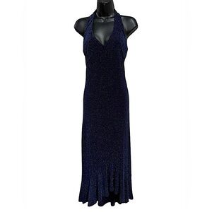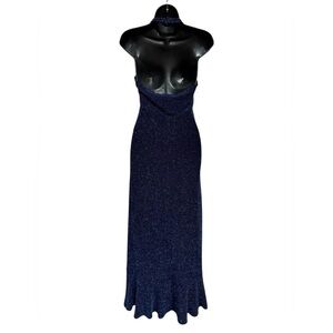 DBY Elegant Navy Blue Halter Dress MEDIUM pit to pit 15in length 53in
