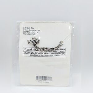 Never opened or worn. It has the hoop and bar close. The faux pearl in the center is of the loops is accented by diamond like stones.