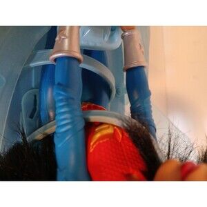 The product is a DC Wonder Woman action figure set from 2016, featuring a 12" Wonder Woman doll and a 16"-20" Invisible Jet Plane. The set is based on the Wonder Woman TV show and movie, made of plastic material with movable features. It is part of the Super Hero Girls franchise and designed for ages 3 and up. The Wonder Woman action figure set is an original, licensed reproduction from the Marvel series. As with any used item expect signs of wear and tear.