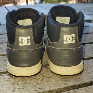 This is a pair of toddler DC high tops. They are a size 9. Lots of life left in these shoes. Light wear. Back right heel shows some wear. See pic.