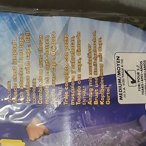 This DC Comics Batman Kids Costume in size medium (8-10) features the iconic blue and yellow colors associated with the Batman character. Made of polyester material, this complete outfit is perfect for young fans looking to dress up as the superhero. The costume includes all the necessary pieces to create an authentic Batman look, making it a great addition to any costume collection or special themed event.