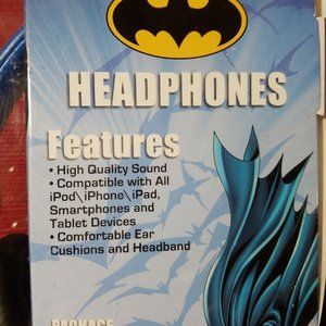 Your little one will enjoy listening to his favorite tunes with these Batman Kids Over The Ear Headphones. One (1) basic adjustable headphone with auxiliary cord to allow connectivity to media device. High quality sound Works with all iPhones, iPads, smartphones and tablet devices. Comfortable ear cushions and headband