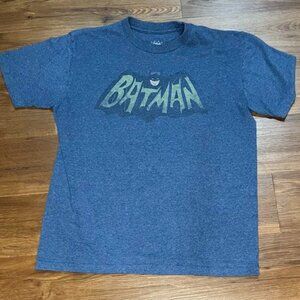 Keywords: Batman shirt, DC Comics tee, superhero top, comic book shirt, retro Batman logo, geek chic, blue heather tee, graphic t-shirt, vintage style tee, nerd culture apparel