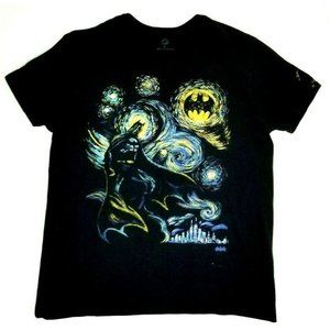 DC Comics Batman Starry Night Style Logo Black T-shirt Size L (T7C)