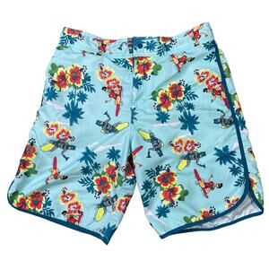 DC Comics Batman Surf Swim Trunks Mens Large Hawaiian Floral Boardshorts