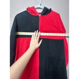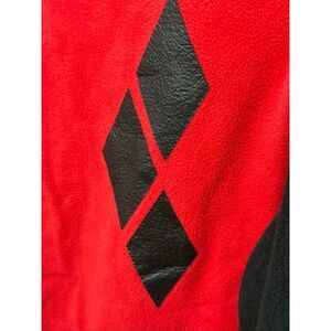 Relax in style and feel like The Joker's loyal sidekick with this Harley Quinn one-piece pajama union suit. Ideal for lounging while enjoying your favorite DC comics, TV show, or movie. This union suit features Harley's classic red and black color scheme, this union suit features an attached hood with 3D jester "ears" and diamond-shaped accents. These soft and cozy pajamas offer warmth on cooler evenings and comfort year-round, whether indoors or outdoors. For easy care, machine wash cold and tumble dry low.
