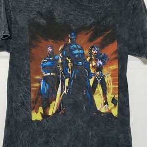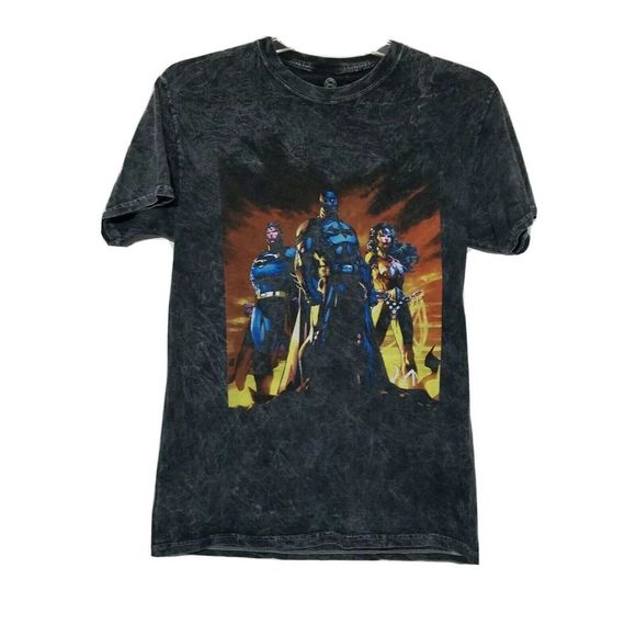DC Comics T Shirt ~ Sz M ~ Gray ~ Short Sleeve ~ Wonderwoman, Batman, Superman ~ 19" Armpit to Armpit ~ 29" Length