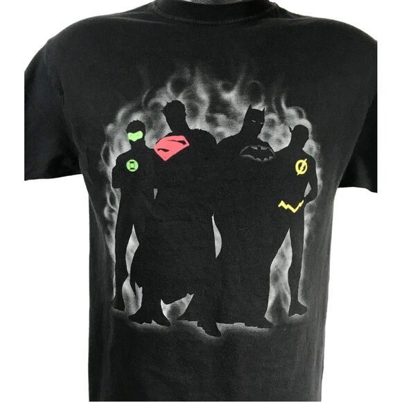 Celebrate your favorite DC heroes with this Justice League T-shirt featuring four iconic characters on the front. Made from 100% cotton, it offers comfortable wear whether you're out with friends or adding to your collection. This pre-owned shirt is in good condition, making it a great choice for fans who appreciate both style and nostalgia.
