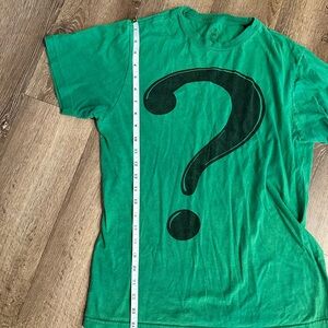 Vibrant green tee with bold question mark graphic. Perfect for fans.