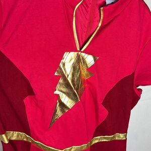 Say his name and let his powers flow through you! Prove you are a worthy champion and defender of Earth in this dress from Shazam! Fury of the Gods. Inspired by your favorite Shazamily member, Mary, this cosplay dress is modeled after her superhero suit. It features two-tone red color blocking and a metallic gold-tone lightning bolt printed on the chest. Comes with a faux leather pointed waistband, notched neckline and the Shazam logo encircled by "We are the power" on the left sleeve. Complete with side seam pockets and a back zipper closure.