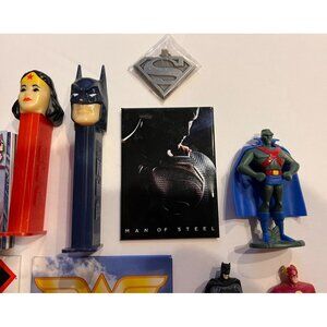 This DC Comics superhero collectibles lot includes Batman, Superman, Martian Manhunter, Hawkgirl and Wonder Woman figures and Pez dispensers. These items capture the essence of iconic characters, offering both playful and nostalgic appeal. Ideal for collectors or superhero enthusiasts looking to expand their collection with a variety of unique pieces.