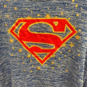 DC Comics Superman Lightweight Tunic High Low Sweater w/Glitter Logo Size Large