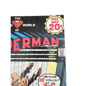 This vintage DC comic, "The Amazing World Of Superman" No. 277, from July 1974, features iconic cover art and classic storytelling. A must-have collectible for Superman enthusiasts.