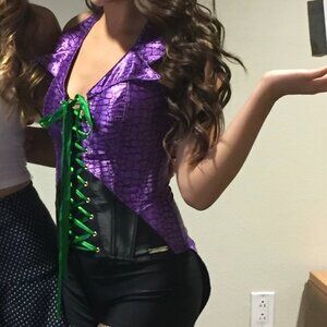 DC Comics The Joker Lace up Halter Top Small Purple Green Corset Costume Cosplay