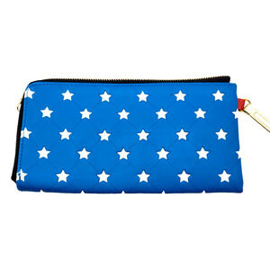 DC Comics WONDER WOMAN Wristlet Organizer Blue with White Stars 9x5"