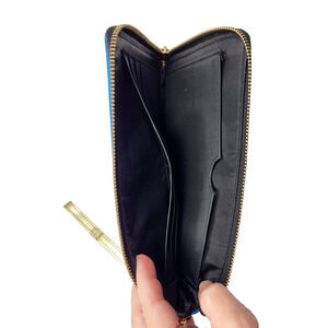 The interior of the bag features black lining and inner dividers to keep your credit cards and other belongings organized. This wristlet is a must-have for any woman who wants to channel the heroic spirit of Wonder Woman.