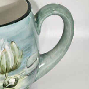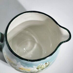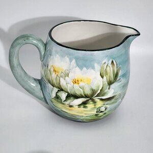 D&C France Vintage Hand Painted Pitcher and Glass Set of 7 Water Lily Green Trim