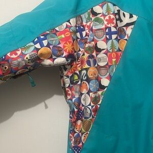 DC Fuse Women’s Graphic Print 2011 Snowboarder Jacket Size Small Teal Black
