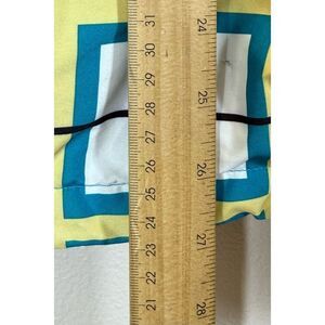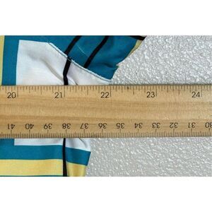 Lots of pockets, zip & snap close. Vented sides. Teal, yellow, black and white plaid print. The thumbholes were cut in