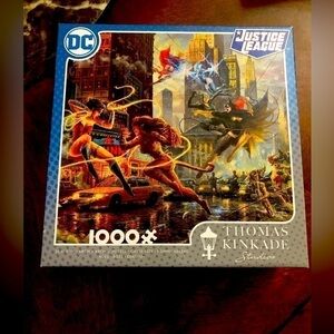 1000 DC puzzle complete in preowned good condition. Thomas Kinkade Justice League