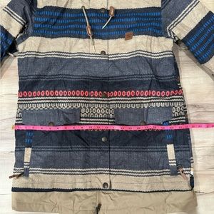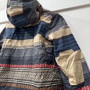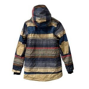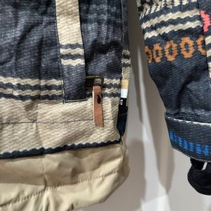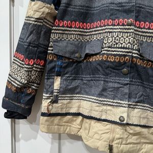 Very good condition snowboard/ski ladies jacket by DC. This jacket is awesome. Has tons of pockets and keeps you warm! The design is stunning and has just the right pops of color.