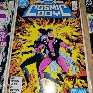 DC Legends Cosmic Boy Vintage Comic Books 1, 2, & 4 Four Mini-Series. Has some wear from use and age. Sold As Is.