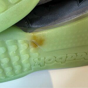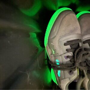 Excellent preowned condition. These shoes are almost like new. There is a stain on the bottom sole and one small stain on the side of the sole (6th picture). They glow in the dark.