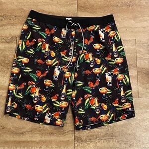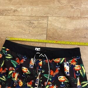 DC Mens Size 34 BoardShorts Parrots Drinks Pattern Beach Swimming Trunks