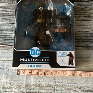 DC Multiverse Robin King action figure with accessories. Features black and gold colors.