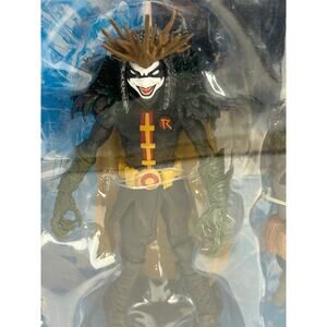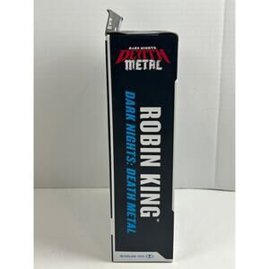 Brand new in box Robin King action figure from the DC Multiverse Dark Nights: Death Metal line (Build-A “Darkfather” wave). The box is sealed; some minor edge-wear and shelf blemishes visible. Includes all accessories, art card, and display base. Great for collectors who want a sealed example.