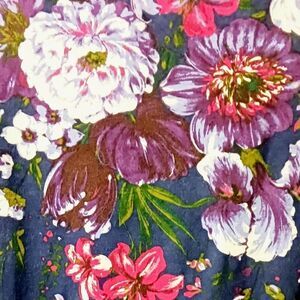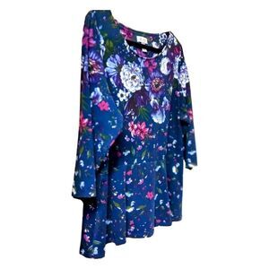 Plus Size 2X = 18-20 Bust: 50" & Length: 28". All measurements are Approximate and taken laying flat. Multi colors of Pinks,Purples,Blue,White & green. Very pretty Floral Colors.