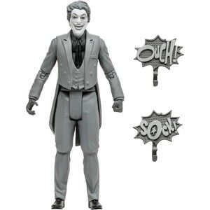 Who is the impractical joker with a key to crime? With a maniacal laugh, a twisted sense of humor, and penchant for setting cunning traps, The Joker is one of Batmans most notoriously fiendish foes. But when it comes to putting an end to The Jokers crime sprees, Batman knows firsthand that The Jokers jokes are never very funny in the end. McFarlane DC 1966 TV Series The Joker Action Figure (Black & White)