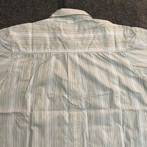 DC SHOE CO Vintage S/S Vertical Striped Button-Up Shirt in size MEDIUM. I purchased this shirt about 18 years ago. It's in very good condition with the exception being the bottom right DC tag is coming loose. Simple fix tho. Item comes from a smoke-free home.