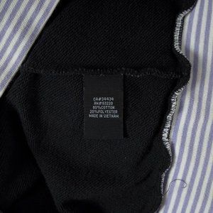 Mock neck, white and purple striped trim, sweatshirt terry knit with semi stretch, purple embroidered logo front/tattoo-like accent on back neck/DC* logo on arm, shirred shoulders, fitted sleeve, regular fit, black full zip closure, unlined, front pockets. Used a few times before retiring into storage. White/purple stripe trim incurred discoloration while in storage - knit, embroidery, everything else in great condition. Minor pilling from launder.