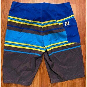 Up for sale is a DC Shoes Board Shorts Mens 32 11" Striped Colorblock Beach Swim Trunks.