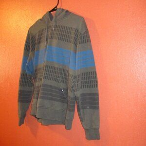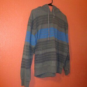DC Shoes Men Medium Gray Blue Graphic Stripe Warm Long Sleeve Pullover Hoodie